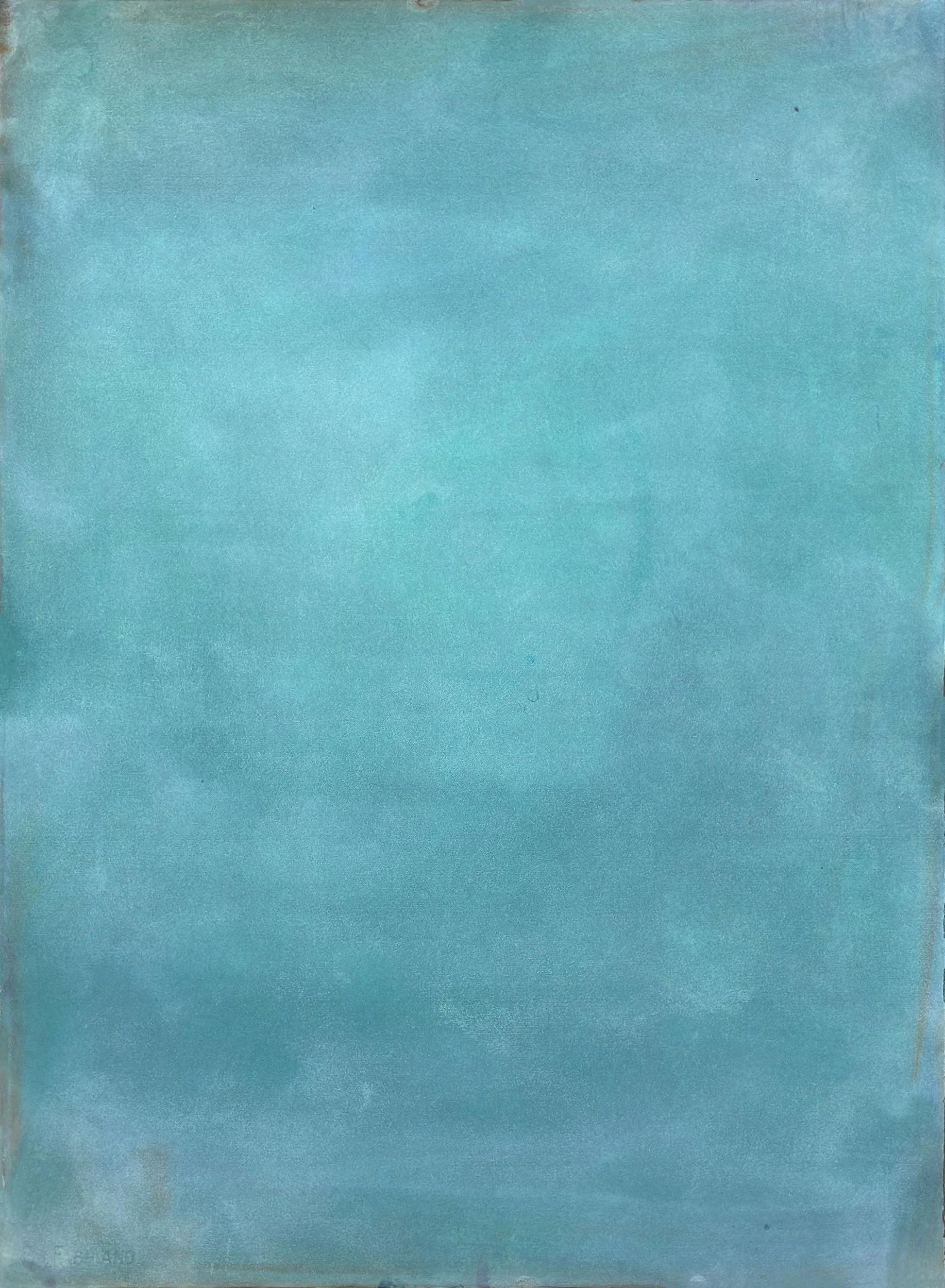 When stretched over one of Heslin’s cedar or Douglas fir frames, the burlap can also become a sieve, a mesh, a scrim; it’s easy to see the frame and white wall beneath. For some works, Heslin removes threads from the burlap’s warp or weft, suggesting the space between two trees on the one hand and the creation of riverine straits on the other.