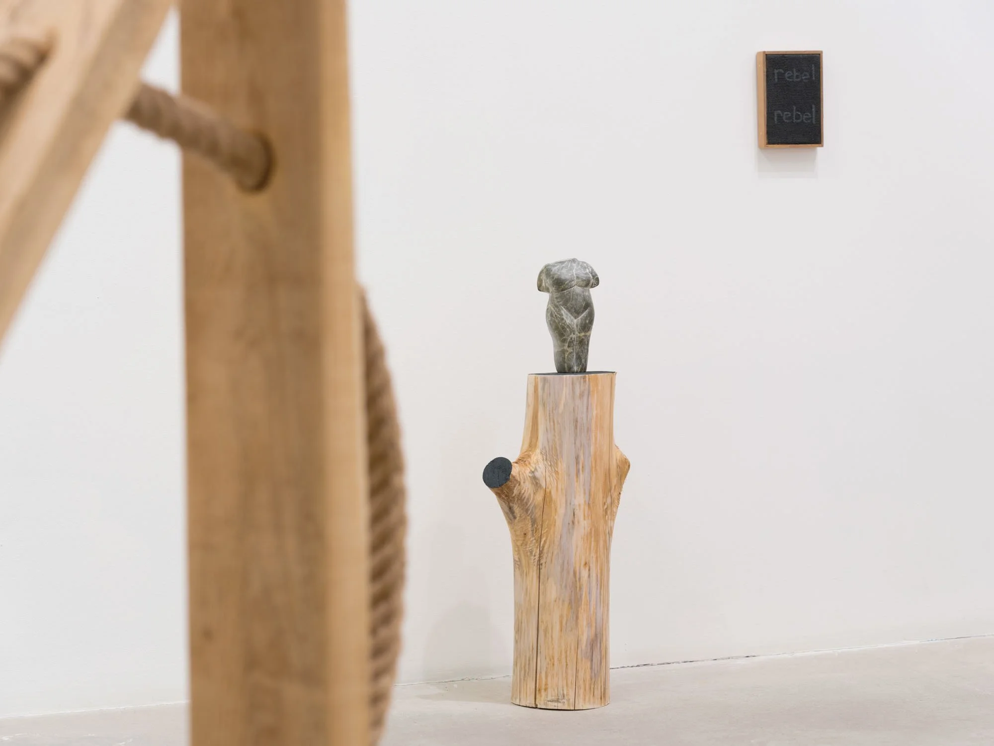 For instance, Heslin’s interests in language, sculpture and critique of art-historical gender biases converge in The Last Woman Standing — a multimedia work that includes a 2016 letter to the British Museum, in which Heslin requested that the word “unflattering” be removed from the curatorial label for an 11 B.C. Assyrian sculpture of a woman’s torso. In the years since, Heslin has tracked quiet changes to that label and worked on a figural homage in soapstone and maple.