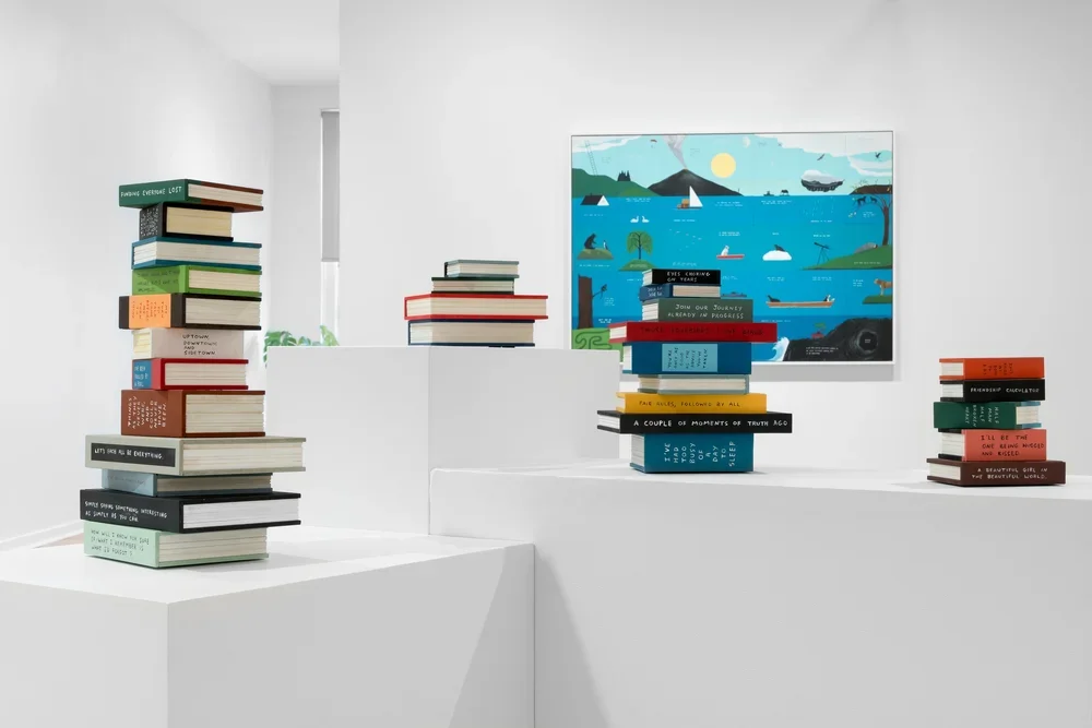 Michael Dumontier and Neil Farber’s practice distills nuanced emotional moments, often to humorous effect. Utilizing various juxtapositions of familiar objects (flowers, animals, houses, books), their works read as a categorical indexing of linguistic and painterly exploration.