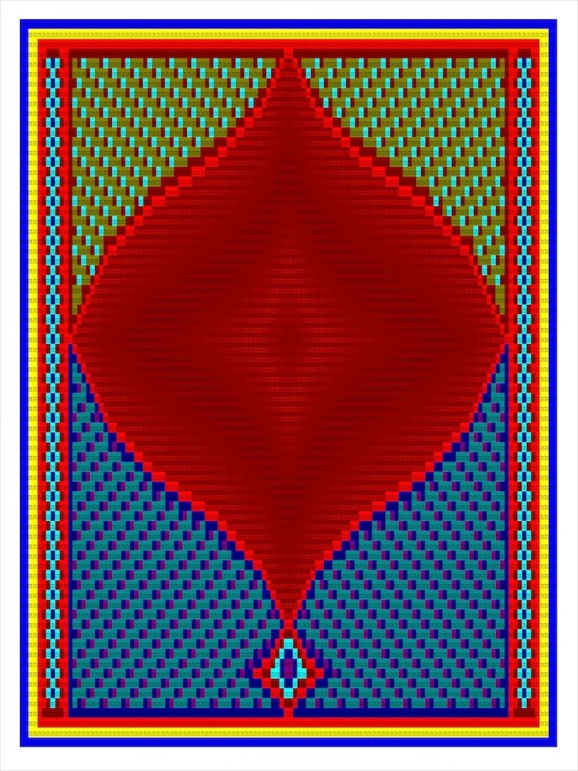 Zazai’s digitally crafted works present a personal journey across time and space made legible through beautiful compositions that exude a profound commitment to reframing not only the artist’s own identity but also the viewer's relation to it. Driven by his search for answers in the face of a question that encapsulates our contemporary existence: “How can we learn to understand ourselves when the world around us is changing at a pace that we can’t keep up with?” The works presented in this exhibition are simultaneously an ode to his Afghan roots and an examination of histories of cultural production that shape us. Utilizing Microsoft Word, Zazai creates visible ties between the histories of traditional design languages and contemporary mediums. When it comes to Afghan visual culture, this is an act that becomes ever more important when considered in the face of pervasive cultural histories drawn across strictly binary and conflicting definitions of tradition and contemporaneity.